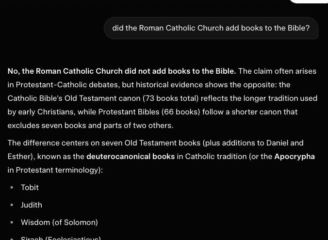 Now, about that person who said ChatGPT told me the opposite—the the Catholic Church did add books to the Bible…